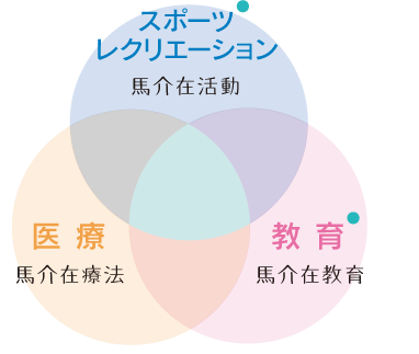 ホースセラピーは「医療」、「教育」、「スポーツ・レクリエーション」の3つの要素を併せ持ちますが、PONYKIDSでは主に教育とレクリエーションの分野に力を注ぎ、療育活動を行います。